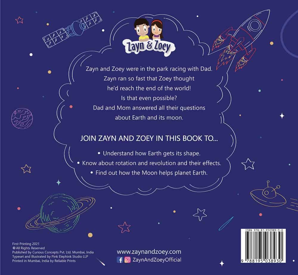 Zayn & Zoey were in the park racing with Dad. Zayn ran so fast that Zoey thought he’d reach the end of the world! Is that even possible? Dad and Mom answered all their questions about Earth and its Moon.