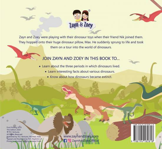 Zayn and Zoey were playing with their dinosaur toys when their friend Niki joined them. They hopped onto their huge dinosaur pillow, Max. He suddenly sprung to life and took them on a tour into the world of dinosaurs.