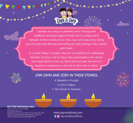 In a small village in Punjab, they join a local family in celebrating Baisakhi. During a visit to Jaipur, they participate in the vibrant Holi celebrations in the city. Mom and Dad take the twins to Varanasi to experience a festival of lights like no other!